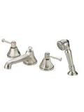 Danze Brandywood Two-Handle Roman Bathtub Faucet with Spray Brushed NickelSKU: D304768BNWidespread adjustable rough-inPersonal shower with Soft Touch control & integral diverter servicesInstalls Decks up to 3" thicknessFits 4 hole tubs with 6??- 12?? centers**